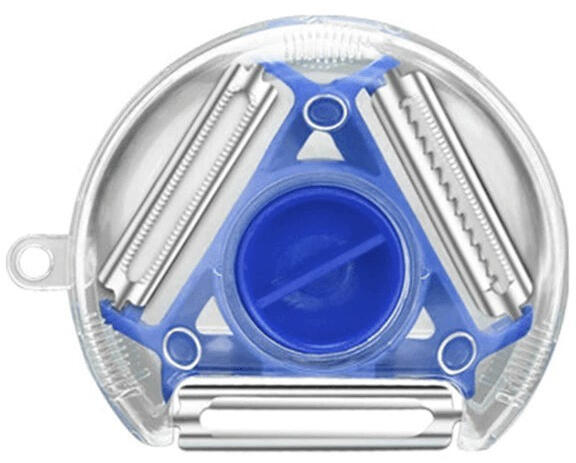 Rozsdamentes acélból készült pengék. 3 pengével rendelkezik. Kényelmes kialakítás. A 3 az 1 -ben konyhai hámozó minőségi, univerzális konyhai eszköz. Rozsdamentes acél pengéivel könnyen meghámozhatod a gyümölcsöket és zöldségeket. 3 pengéje van: általános (kemény zöldségekhez), fogazott (gyümölcsökhöz) és julienne (cukkinihez, répához). Zárrendszere biztonságosan rögzíti a pengét. Továbbá tartása is kényelmes az ergonomikus kialakításának köszönhetően (a hüvelykujjaddal jobb és bal kézzel is kényelmesen tudod tartani a neki kialakított helynek köszönhetően). A romlott részeket egy kiálló lyukasztóval ki is tudsz vájni. A 3 az 1 –ben hámozó tulajdonságai: Anyaga: 402 + PP rozsdamentes acél, rozsdaálló. Szín: kék, piros, zöld Méret: Kb. 9 cm × 8,5 cm Mit rejt a csomag? 1 × 3 az 1 –ben hámozó